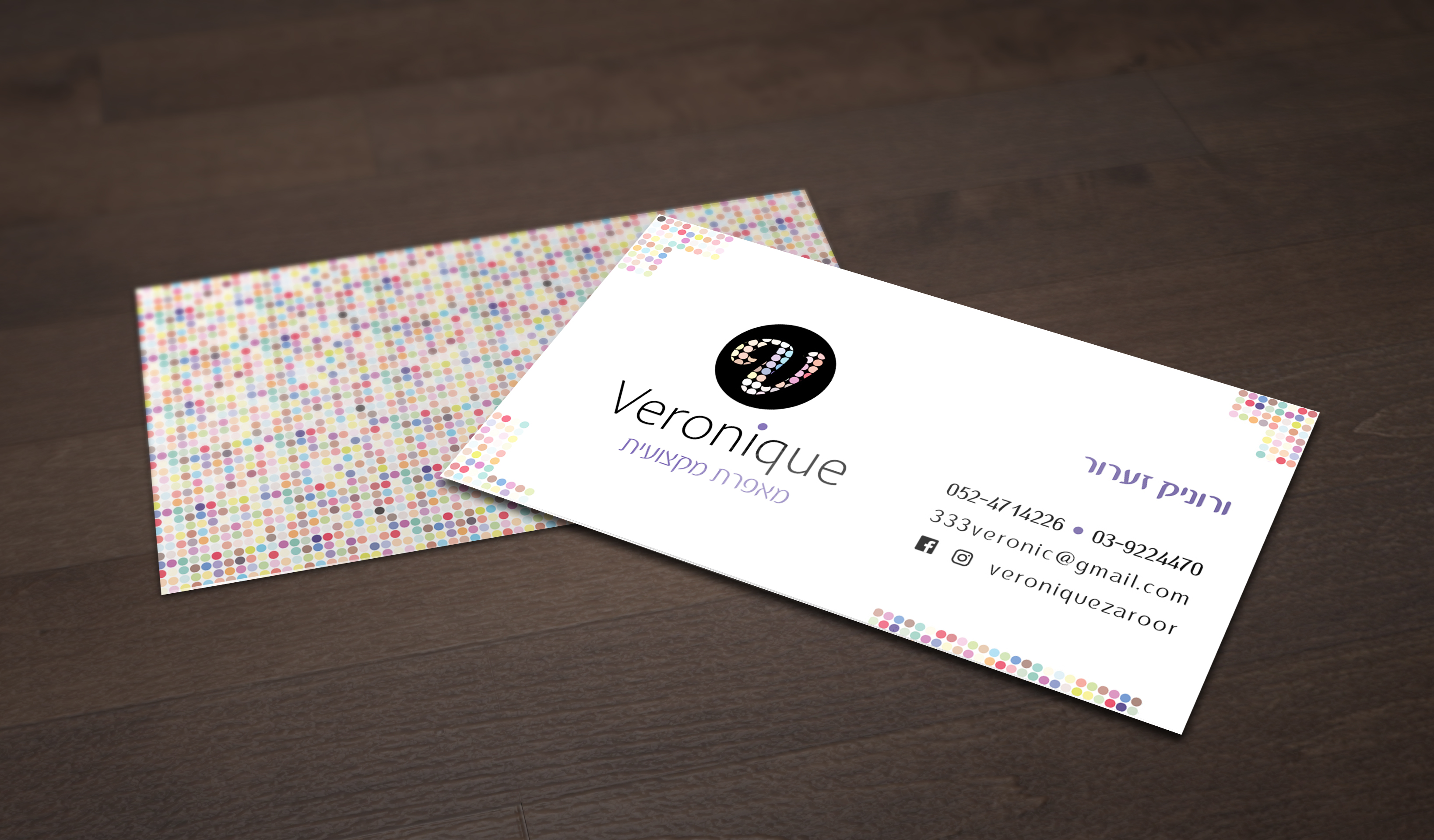 We developed a bespoke brand identity for Veronique, a makeup artist. The concept centers on a stylized “V” that reveals a set of makeup colour swatches seen through the letter, paired with a palette-inspired pattern and refined typography.