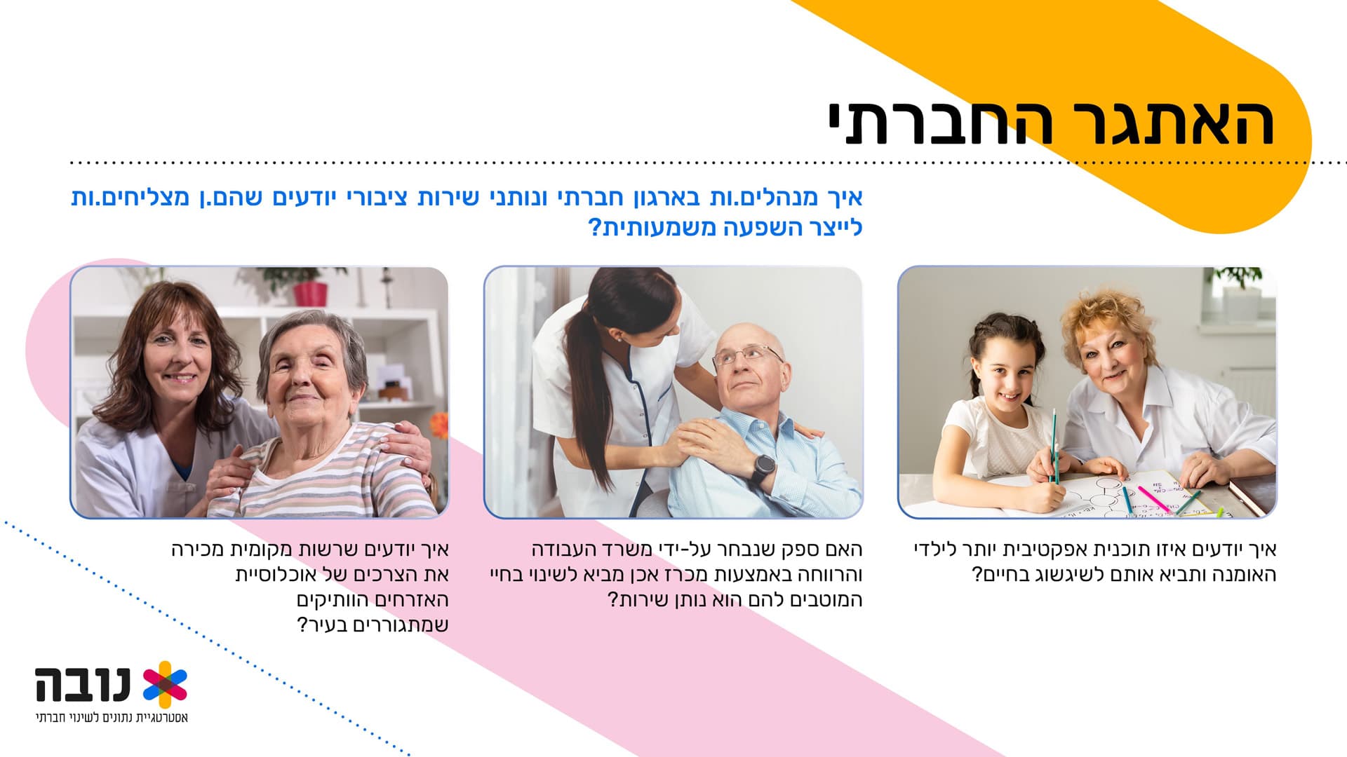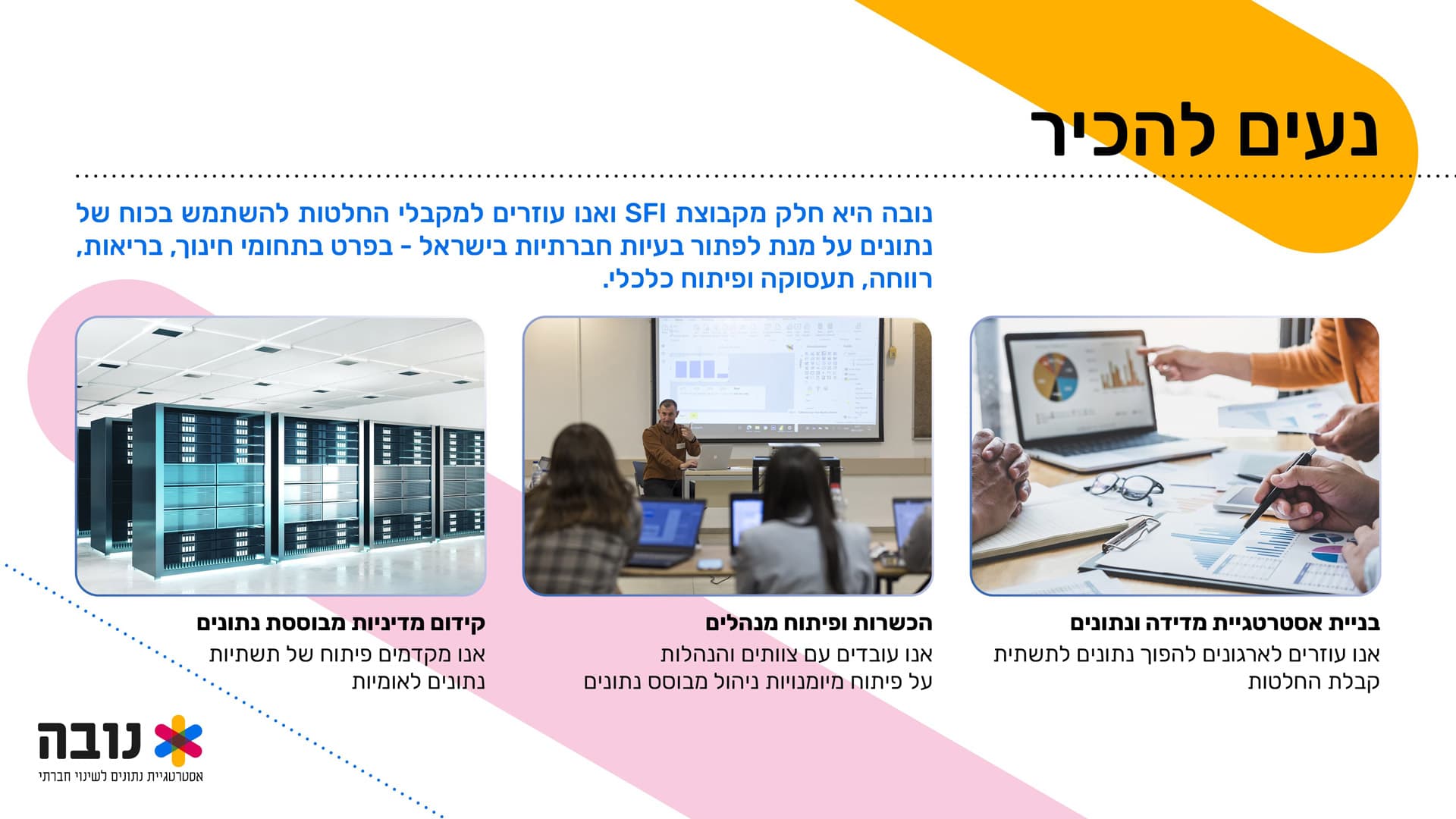 Nova is a non-profit organization dedicated to empowering decision-makers with data-driven insights to tackle Israel's most pressing social challenges in education, health, welfare, and employment.