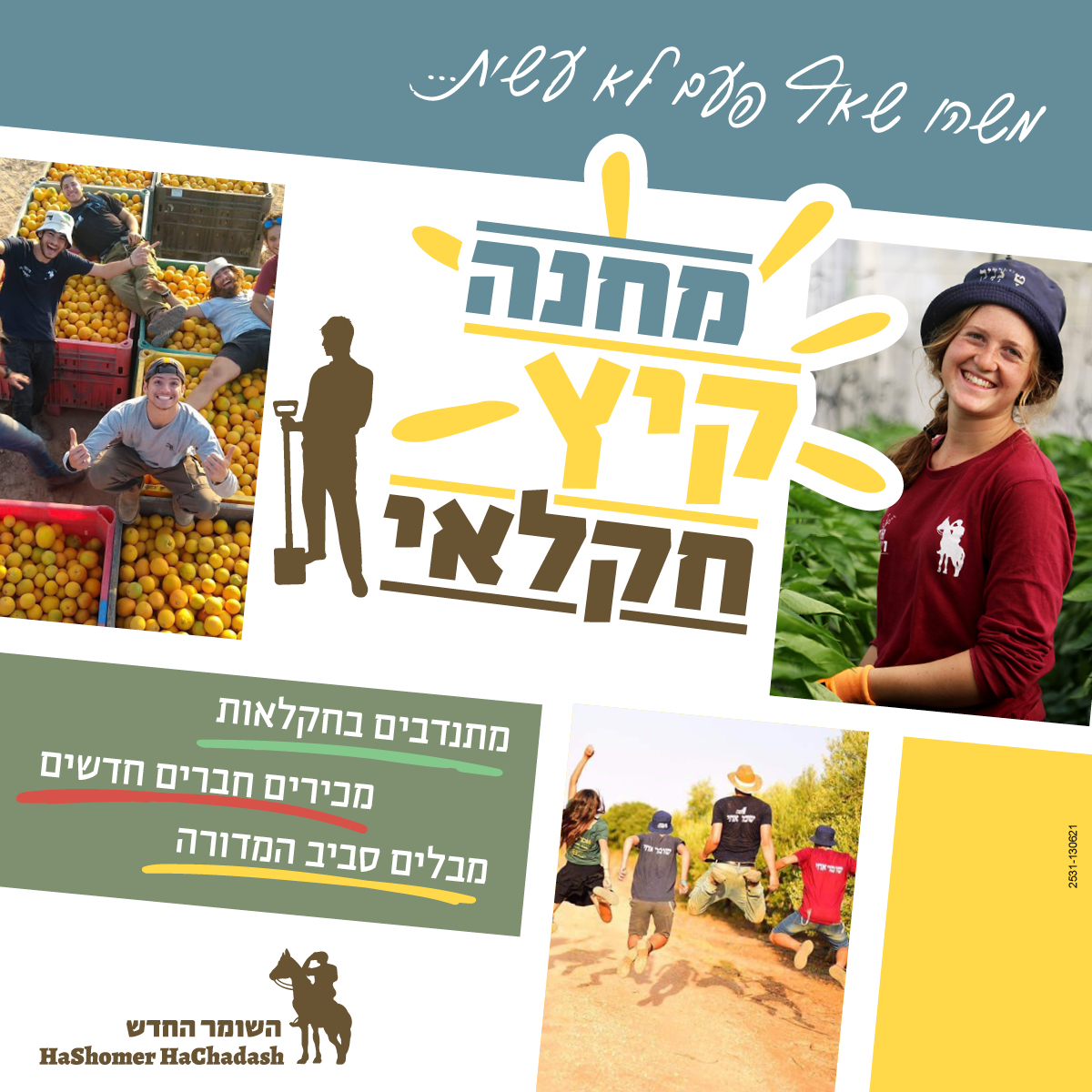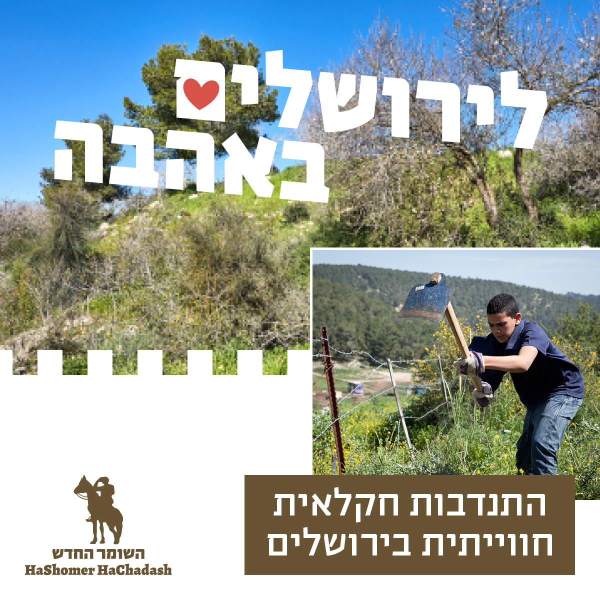 Hashomer Hachadash (The New Guardian) is an organization whose purpose is to preserve and protect the Israel's lands through practical work and learning. Conservation is achieved through agricultural and forestry activities, as well as strengthening the Israeli society's connection to its land through education and tourism initiatives.
